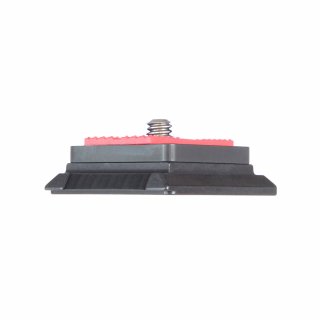 Jede Schnellwechselplatte verfügt über eine ¼"-Befestigungsschraube, die entweder mit dem unter der Platte befindlichen Bügel oder mit einem Geldstück befestigt werden kann. Die Schnellwechselplatten sind aus hochfestem Aluminium gefertigt und haben zum Schutz der Kamera / des Objektives ein Inlay aus PVC.